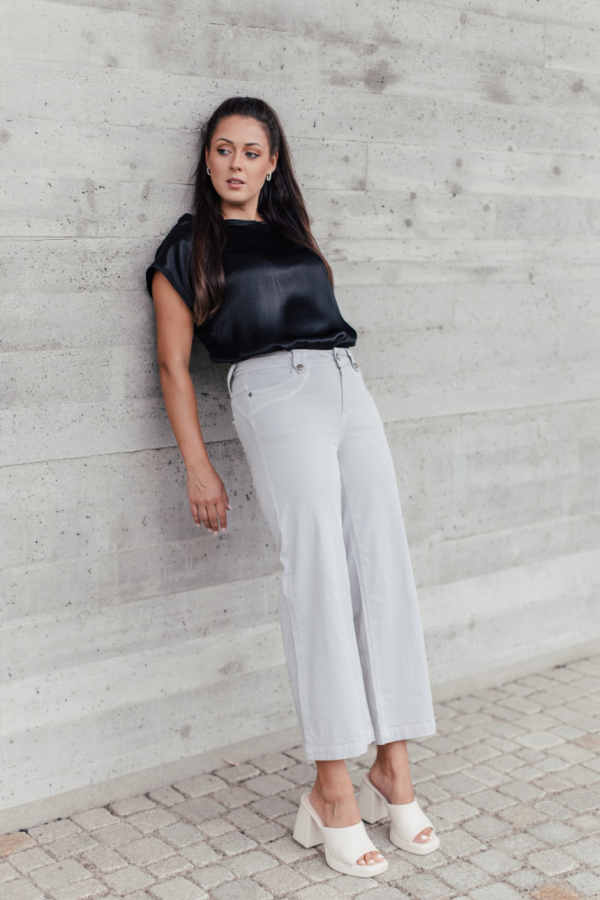 Holen Sie sich mit der Clara Bea FLARED Damenhose den perfekten Look für den Sommer! Die graue Farbe und die ausgestellte Form verleihen Ihnen eine elegante und luftige Optik. Sowohl für den Tag als auch für den Abend geeignet, die ideale Kombination aus Stil und Komfort.