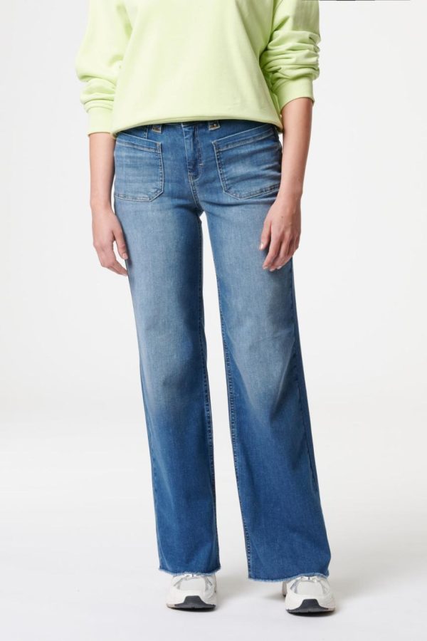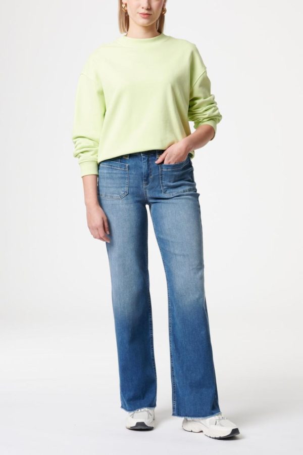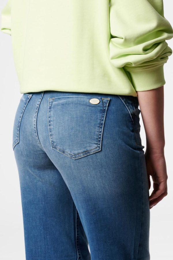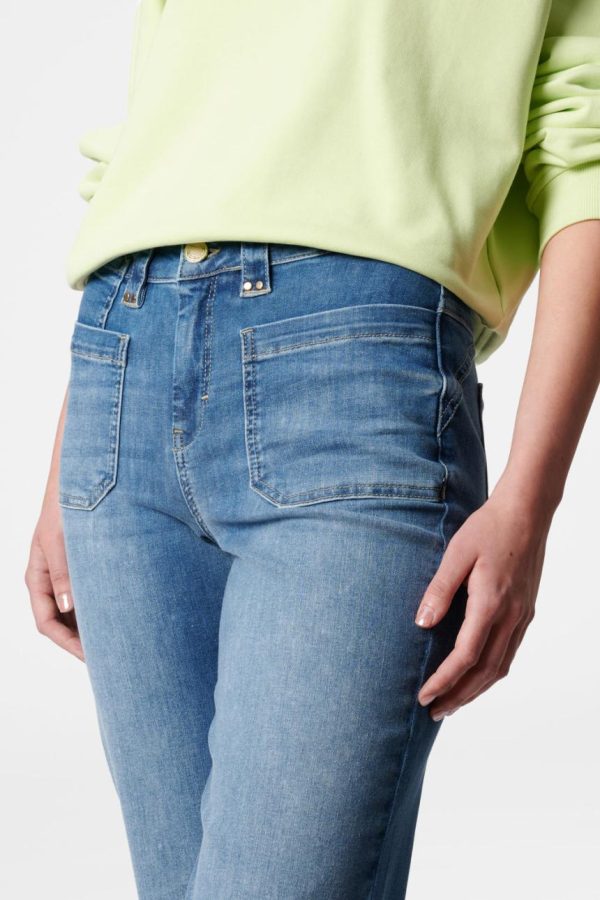 Glücksstern Clara Flared Südenblau Weiche Stretch-Jeans Mit Ausgestelltem Bein, Hohem Bund, Femininer Silhouette, Bequemem Sitz Und Aufgesetzten Taschen. | Damen Clara Flared