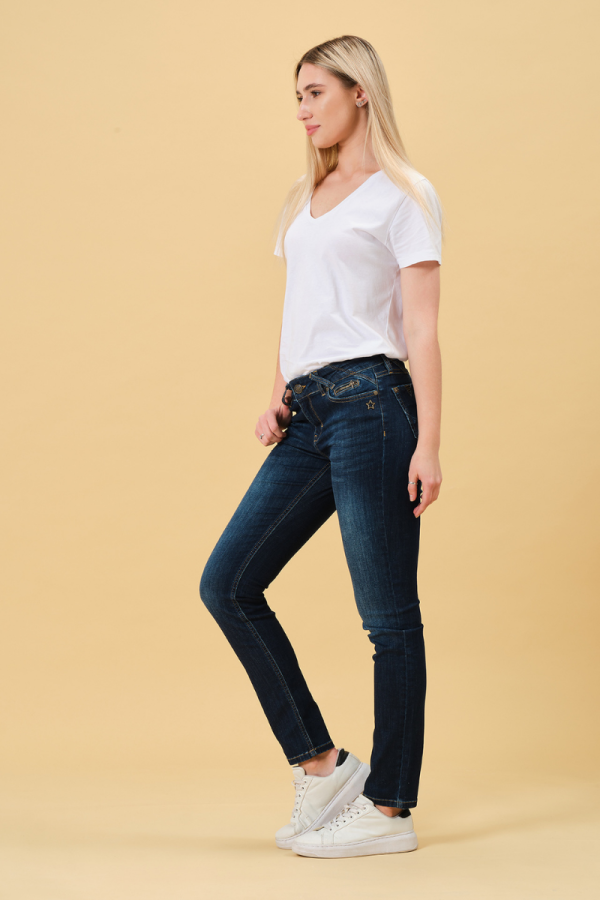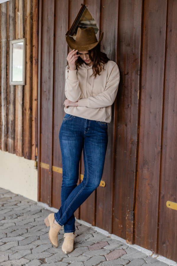 Erleben Sie die lässige Eleganz der Melina RÖHRE – Frostblau. Mit dem zeitlosen Denim-Stoff und den Nietendetails ist dies ein Must-Have für jeden Kleiderschrank. Lassen Sie sich von dem schönen Look und angenehmen Stoff begeistern!