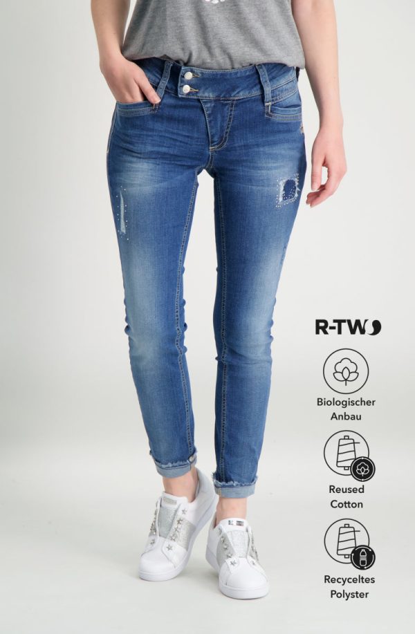 73 % Baumwolle, 13 % reused Cotton, 11 % recycled Polyester, 3 % Elasthan