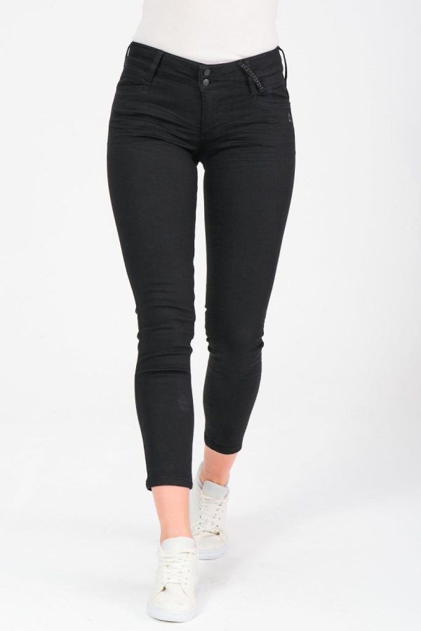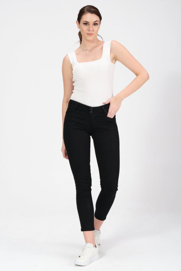 Schwarze Hose mit schönem Nietendetail an der vorderen Gürtelschlaufe