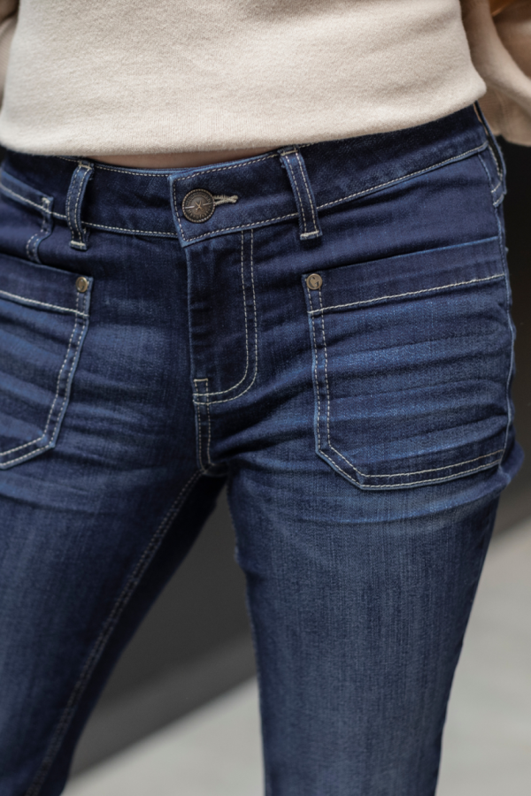 Stylisch auch an kalten Tagen! Unsere Petra BEA BOOTCUT in Blattblau sticht aus der Masse heraus. Ihr Bootcut-Schnitt in Kombination mit aufgesetzten Taschen im Vorderteil lässt Sie modisch und stilvoll aussehen.