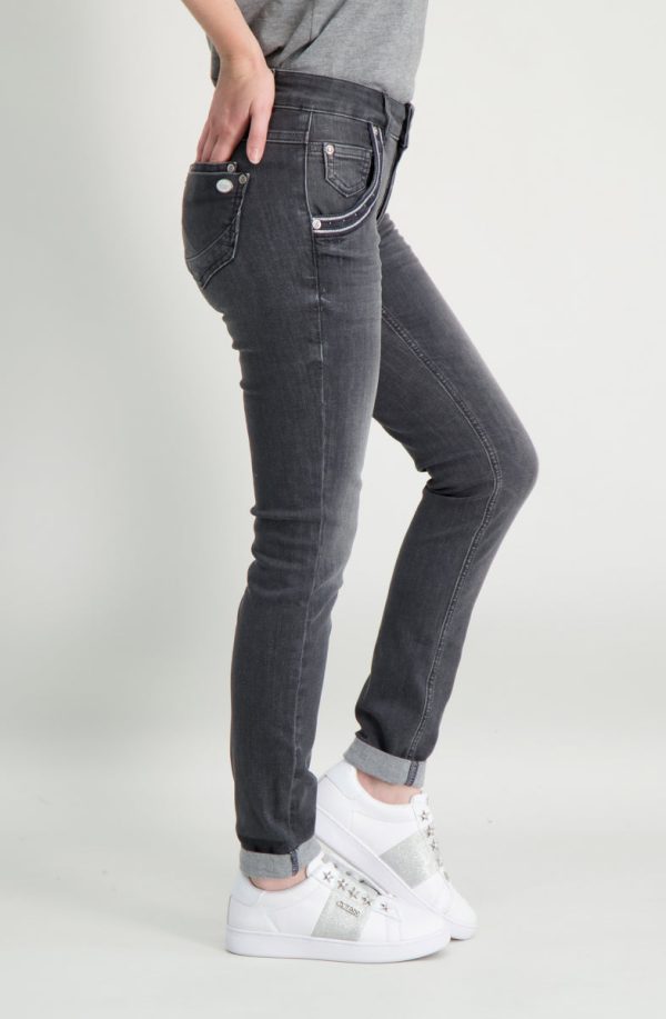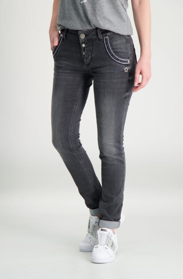 77 % Baumwolle, 20 % recycled Polyester, 3 % Elasthan