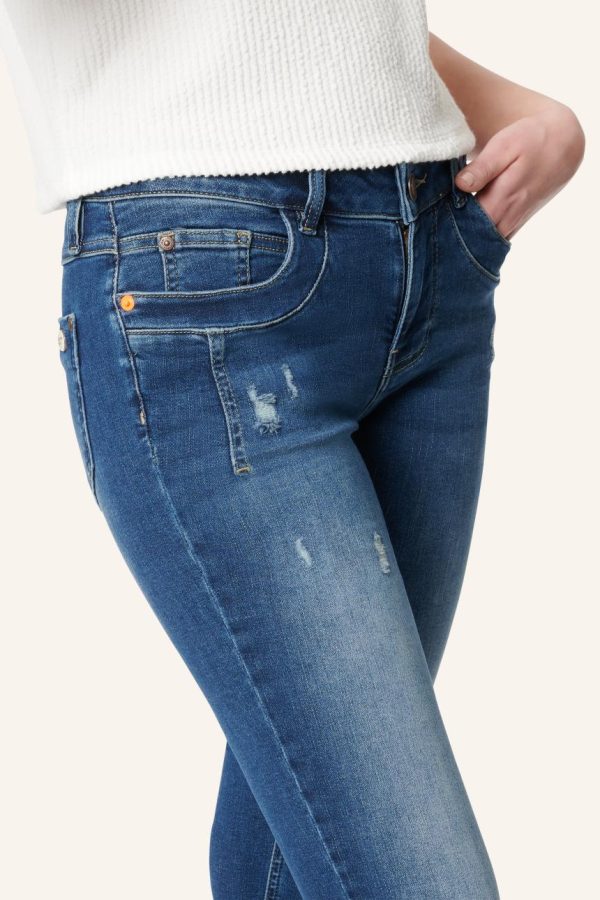 Unser Model Marlena ist 174 cm groß und trägt eine Größe W26= Konfektion 36.